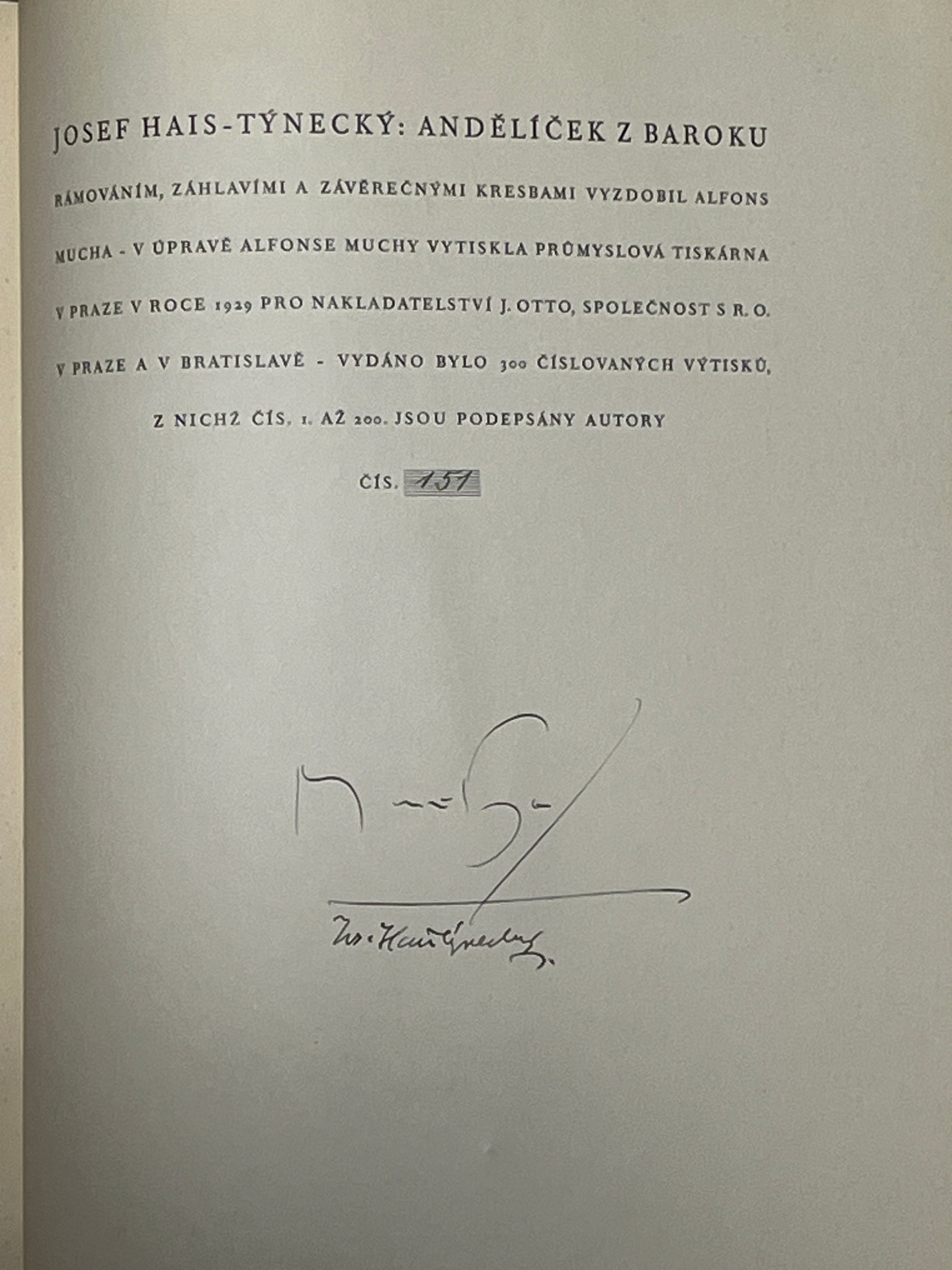 著者ハイス・ティーネツキーとミュシャのサインが入っている貴重な本です。